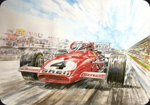 Ickx arranca e assegura o primeiro lugar seguido pelo muito rápido BRM de Rodriguez e pelo March de Stewart, que partiu sem ailerons para melhor afrontar a supremacia dos Ferrari e BRM em velocidade de ponta. Na primeira volta já Surtees (March) tinha abandonado imitado pelo meu compatriota Siffert (BRM)… O primeiro golpe de teatro deu-se na 13º volta quando o 12 cilindros do muito rápido BRM de Rodriguez rendeu a alma ao criador. Giuntti (Ferrari) parte o motor na 15º volta para 10 voltas mais tarde Ickx ficar sem embraiagem. …com o abandono de Brabham e Peterson, restavam em pista Stewart, Beltoise (Matra), Hulme (McLaren) e Stommelen (brabham). Eu compreendi que Stewart era o homem a bater: o seu orgulho não me ia facilitar. O seu March azul estava sempre nos meus retrovisores e a 10 voltas do fim na parabólica, beneficiando do cone de ar de Stewart, Beltoise surpreendo-o e instala-se na minha traseira. Num piscar de olhos chego à dupla de Lesmo, retardei ao máximo a travagem, passei para terceira e inseri com decisão a frente do meu Ferrari no interior da curva. Neste momento os meus adversários não existiam mais, somente os espectadores que agitavam os braços ao longo da pista. Eu estava concentrado ao máximo, não podia cometer um erro. A primeira Lesmo era a mais difícil e eu a passei quase perfeito, entre as duas, 4º velocidade, saio da segunda Lesmo em plena aceleração com o carro em glissagem quase a tocar os rails de proteção. Pelos espelhos vi que o March de Beltoise com Stewart muito perto tinham perdido terreno, coloquei 4ª até ás 1250 rotações antes de passar a 5ª em direção à curva Ascari, nos meus retrovisores vejo o March deixar o cone de ar para ultrapassar o Matra, coloco-me à direita e depois à esquerda para não se aproveitarem do cone de ar, um olhar pelo espelho retrovisor e… nada..não via nada, um segundo de espanto… olhei melhor e por causa da trepidação os espelhos tinham-se partido. Mas a hora não era para hesitações. Faltavam 6 voltas, os meus mecânicos assinalaram-me “Clay+2”, não é possível explicar as minhas sensações nestas três voltas , mas foram sem dúvida as mais difíceis de todo o GP. Eu rodava sem pontos de referencia em relação aos meus adversários. Cada vez que descrevia a Ascari o espetáculo era excitante. As bandeiras esvoaçavam e a loucura era a melhor recompensa à minha cavalgada. Mas entretanto , as boxes viviam o seu drama. Uma fuga de combustível fazia temer o pior e preocupava o Eng. Forghieri . Mas as emoções não tinham acabado para mim. Em plena reta o motor faz um barulho ensurdecedor: institivamente diminui a pressão no acelerador deitando uma vista de olhos aos manômetros, nada de grave, era somente as bolas de cera de proteção do ruído que tinham caído dos ouvidos.