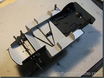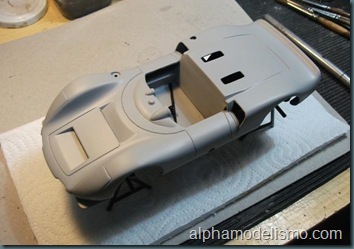Nota: Como se vê na foto os vidros são separados da restante carroçaria, pelo que isolei os transparentes com mascara da Tamiya, para minha desgraça o colante do papel atacou os transparentes, nunca tal me tinha acontecido, pelo que tiveram de ser todos lixados com lixa fina, depois com massa de polir e posteriormente com pasta de dentes, e até que nem ficou nada mal, o vidro traseiro ainda não está completamente polido, para depois dar o verniz amarelo como os Carrera 6 utilizavam. os decalques vou fazer na impressora.