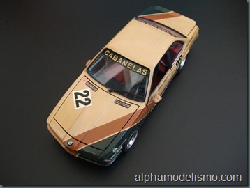 Toda a decoração foi pintada a pincel, os logos feitos com letras da LetraSet e os mais pequenos a pincel.Como se pode ver o interior era a vermelho, já que o BMW tinha sido adquirido em França onde corria no Campeonato de Superturisme com as cores da Marlboro ou da Motul, ambas em que o encarnado é a principal cor, pessoalmente acho que era o da Motul pois o desenho exterior é igual só variando nas cores, mas já vi escrito aqui na net que devia ser o da Marlboro, fica a dúvida….